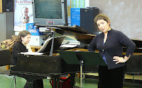 On January 6, 2010, the NYCC gave two back-to-back recitals, each lasting a full school period, to nearly 200 students and their music faculty at the Bronx High School of Science (the NYCC’s first Community Encores recital in a school venue to teenagers). In a survey of art songs spanning the last 100 years, soprano Sofia Dimitrova and pianist Catherine Miller, with introductions and commentary by executive director, John de Clef Pi√±eiro, presented samples of the new music vocal repertoire of Charles Ives, Aaron Copland, Gian Carlo Menotti, as well as music by current and former NYCC member composers. Notably, Composer Member Richard Russell was on hand to introduce and comment on the composition of his Three Elegies, and to answer questions from the audience. Both presentations were very well received and the NYCC was invited back by the faculty to give other future recitals. This first outreach recital of 2010 is part of an expanded series of outreach programs that the NYCC will present during the spring.